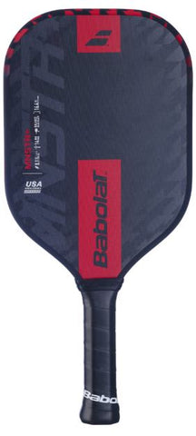 The Babolat MNSTR + pickleball paddle delivers powerful performance for competitive players. Its elongated shape and extended 5.8-inch handle increase leverage and paddle head speed, making it especially effective for powerful drives and two-handed backhands.
