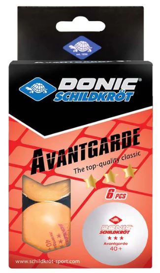 Avantgarde 3-Star plastic table tennis ball for advanced leisure games and intensive training. 6 balls in the colour white